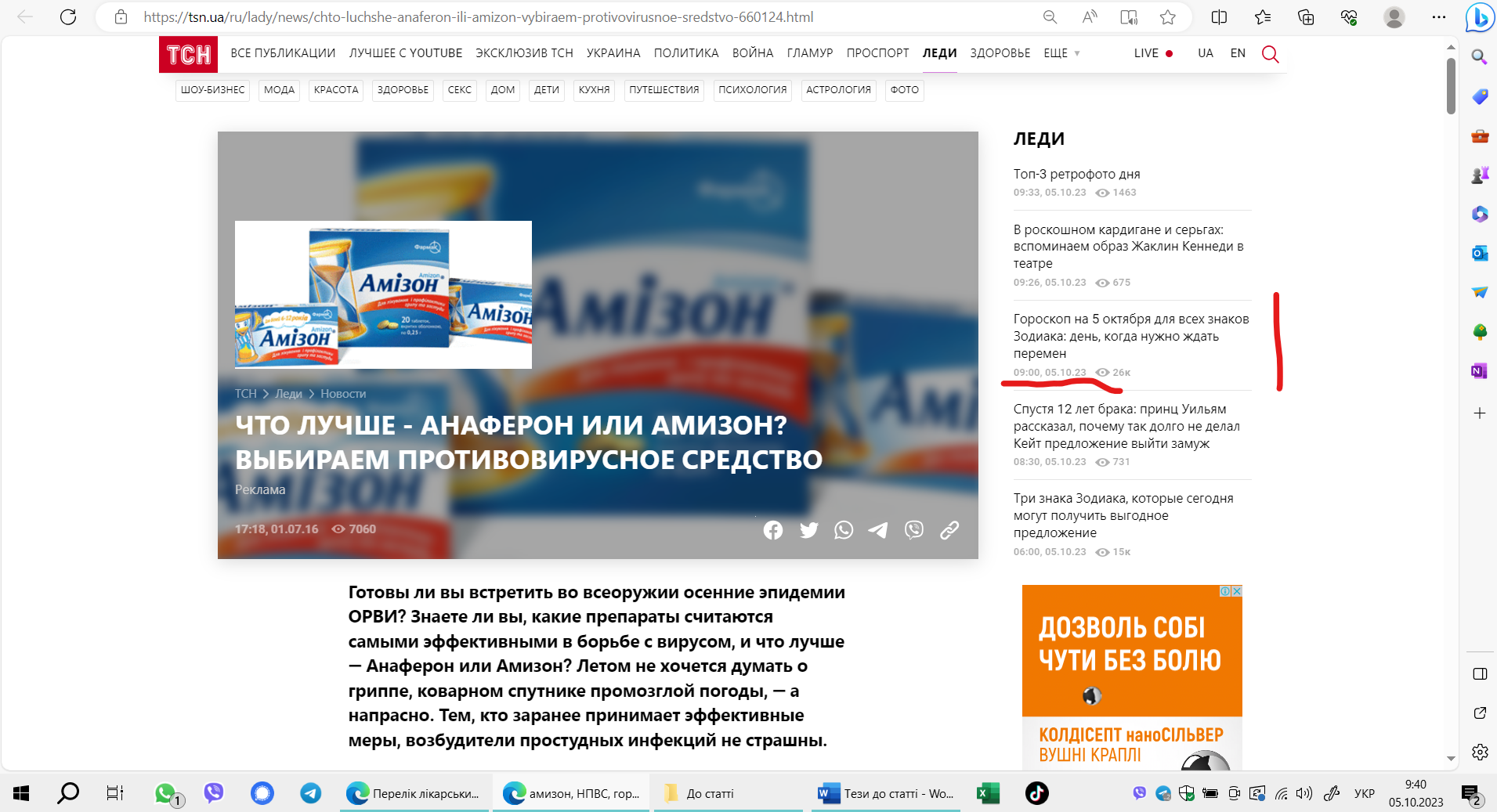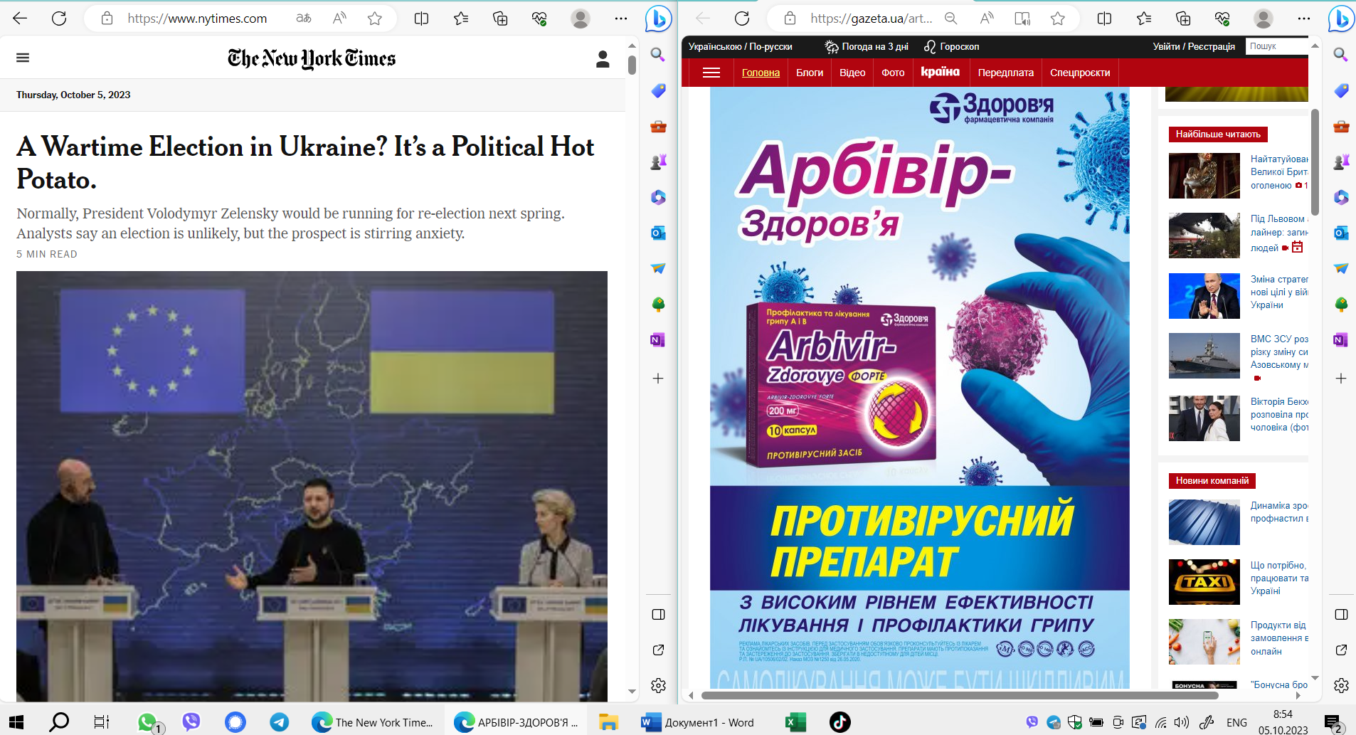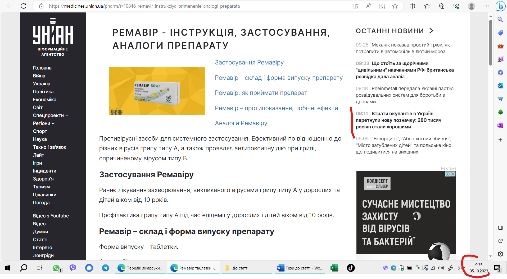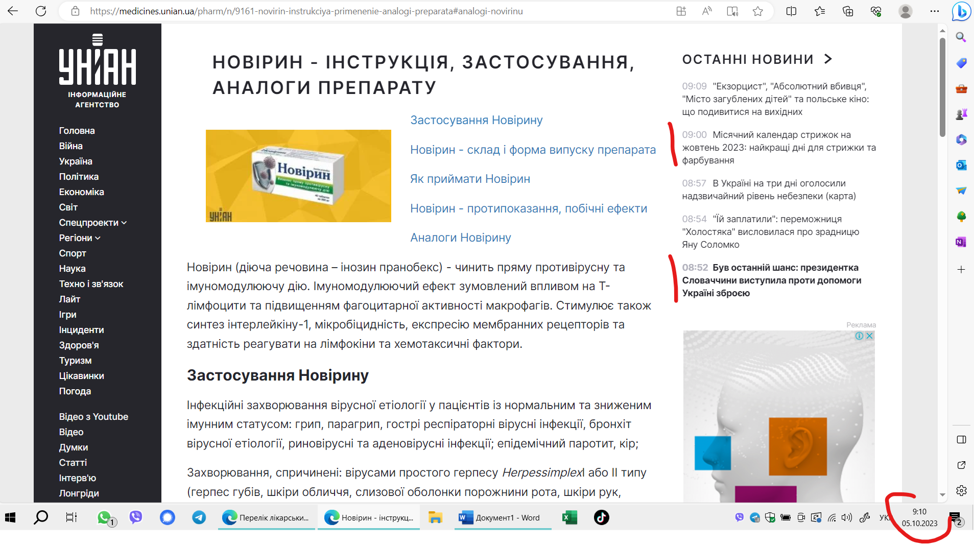 21 вересня 2023 року набрав чинності наказ МОЗ №1295 «Про затвердження Переліку лікарських засобів, заборонених до рекламування, які відпускаються без рецепта». До цього переліку увійшли 513 безрецептурних препаратів, включаючи ті, що позиціонуються як противірусні, — «Амізон», «Арбівір», «Новірин», «Інгавірин», «Еребра», «Нуклекс» тощо.