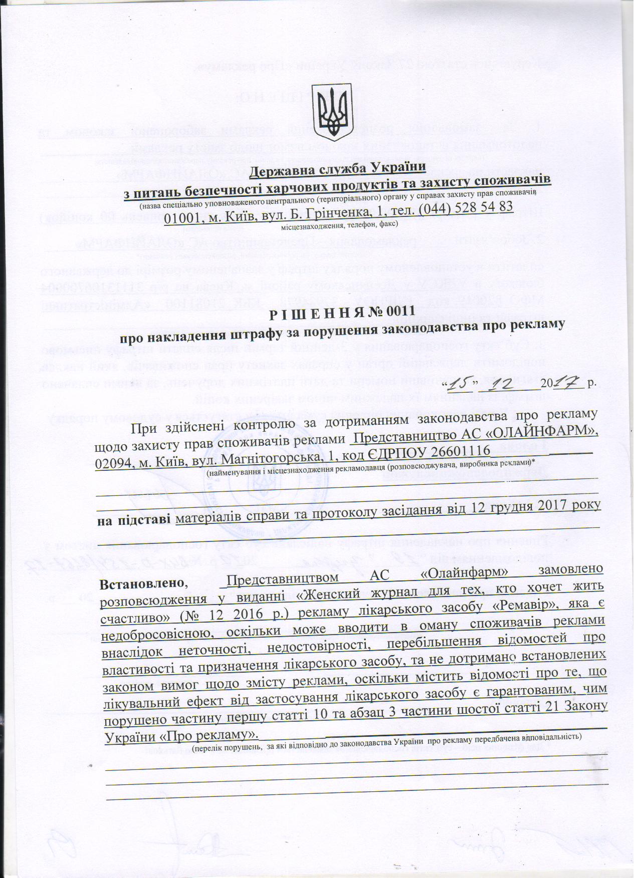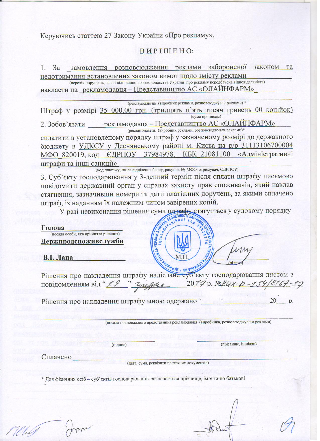 (приклад: Рішення ДПСС про накладення штрафу сторінка 1, сторінка 2)
